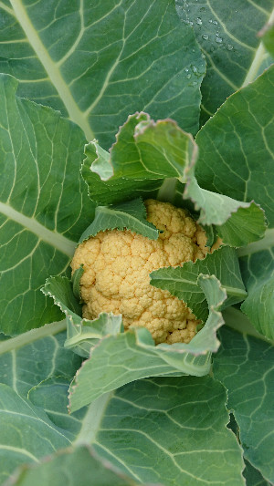 先日は白?のカリフラワーを収穫できましたが、今度はオレンジ色が大きくなってきました。